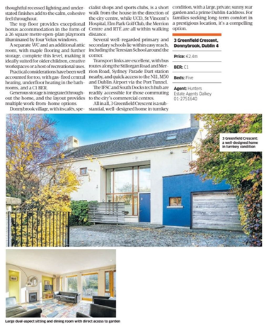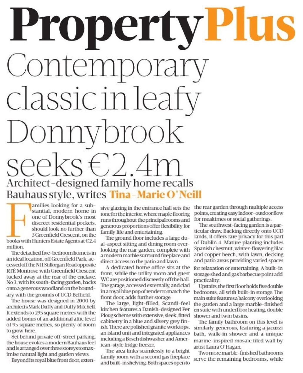 3 Greenfield Crescent, Donnybrook, Dublin 4 as featured in the Sunday Times 14th December 2025