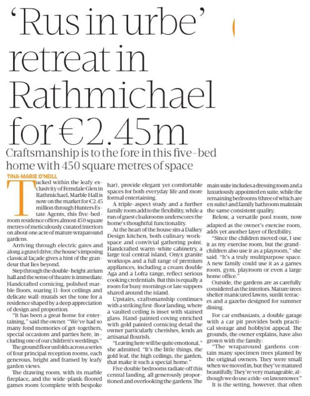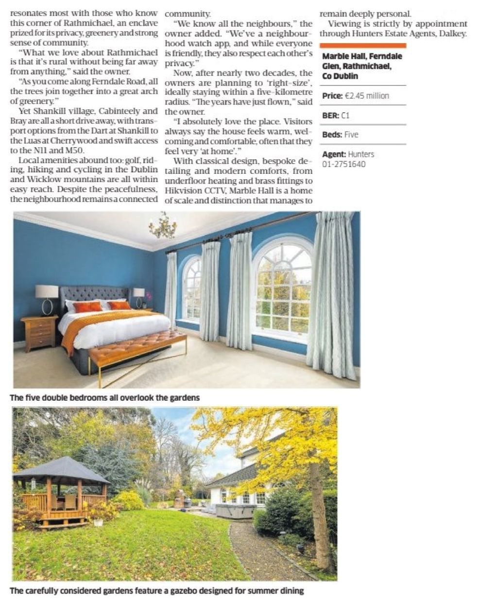 Marble Hall, Ferndale Glen, Rathmichael, Dublin 18 - As featured in the Sunday Business Post, 30th November 2025
