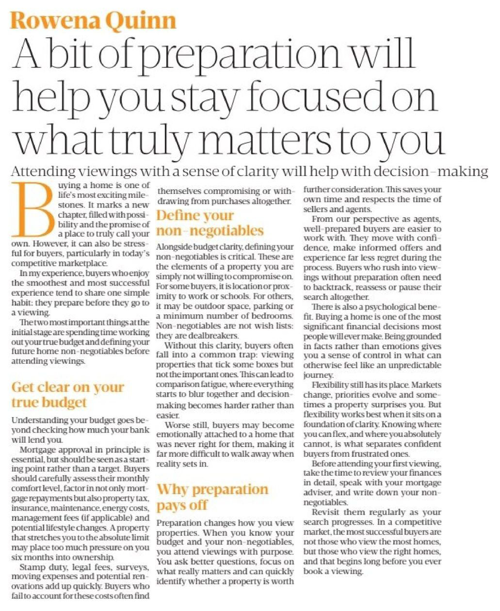 Prepartion when you buying a home with help you stay focused, featured in the Sunday Business Post, 25th January 2026